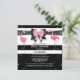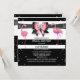 Convite Preto branco rosa listra brilho laço flamingo chiq