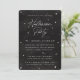 Um convite de festa de Halloween elegante e moderno com escrita à mão branca e estrelas espalhadas contra um fundo preto levemente desgastado. Todo o texto - exceto a escrita 'Halloween Party' - é totalmente editável, então você pode facilmente adicionar ou excluir texto e alterar o estilo/tamanho/cor/layout da fonte para atender às suas necessidades. Este design está disponível em outras cores, em papel-cartão de diferentes formas e também em acessórios coordenados.