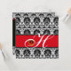 Elegante, sofisticado, design floral único, cravos pretos e brancos com uma pedra preciosa rubi 3D brilhante. Você pode mover a pedra preciosa para personalizar com suas iniciais e texto como um anúncio de casamento, cartões de lugar, save-the-date, noivado romântico, cartões de agradecimento, chá de noiva, festa de aniversário de 16 anos, aniversário, formatura ou qualquer outro evento que desejar!