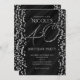 Convites de Aniversário de 40 anos Preto & Brilho Falso Prata Glam. Personalize para qualquer evento.