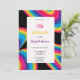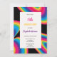 preto com ranhura arco-íris convite de aniversário ondulado convite preto com linhagens multicolores e escrevendo arco-íris