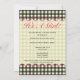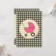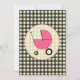 Um convite que caracteriza um fundo preto do guingão sobre o bege morno com guarnição do rosa quente. Personalize o texto marrom da pia batismal com detalhes de seu evento. O lado oposto é guingão contínuo com uma carruagem de bebê do rosa quente dentro de um quadro dado forma círculo de harmonização.