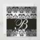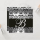 Convite PRETO E BRANCO DAMASCO MONOGRAMA prata pedra de lu
