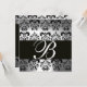 Convite PRETO E BRANCO DAMASCO MONOGRAMA prata pedra lua