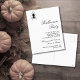 Convite de cartão postal para festa de Halloween, com um desenho de teia de aranha preta e branca e aranhas. Com texto preto e branco personalizável, você pode adicionar suas próprias informações. Ótimo para convidar amigos e familiares para sua festa de fantasias ou encontro de Halloween.