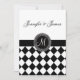 Convite preto e branco do casamento do monograma