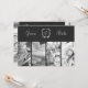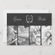 As fotos casamento-temáticos e motocicleta-temáticos preto e branco moldadas por um fundo do couro-efeito fazem a este convite do casamento uma escolha sofisticada, moderna para casais do motociclista. Uma forma aberta do protetor na parte superior contem um monograma customizável. Todo o texto pode facilmente ser mudado para serir suas próprias necessidades.