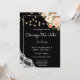 As coisas mudam. Envie aos seus convidados um lindo convite de casamento de alteração de data com esta flor de pêssego e rosa claro com decoração de luzes de renda e corda. Ótimo para casamentos rústicos e campestres.