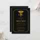 Um "BSN" caduceus dourado e design de convite de festa de formatura preta de moldura escalpada que pode ser personalizado para a graduação em enfermagem. Design composto por Holiday Hearts Design (direitos reservados).