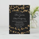 Preto e Branco romântico e elegante com convite para casamento de folhas Douradas, desenhado com folhas de cor amarelo macio e texto branco sobre fundo preto. O texto inclui: Juntamente com suas famílias, os nomes dos Cheios da noiva e do noivo, a data e hora do casamento, a localização e recepção a serem seguidas. O texto do lado inverso inclui: Os detalhes do RSVP sobre um fundo branco com sotaques de folha dourada e texto preto. Para personalizar, basta inserir seus detalhes em nosso modelo fácil, substituindo o texto de exemplo.