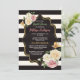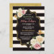Este chá de panela chic e moderno apresenta um amplo padrão horizontal de faixas em preto e marfim com uma caixa de texto decorativa em forma de colchete preto em preto com duas bordas externas de ouro. Há dois buquês florais coloridos no canto superior esquerdo e inferior direito da área de texto e têm adoráveis rosas em creme, marfim e rosa, com um lírio peruano laranja e uma folhagem verde. Todos os textos podem ser personalizados, como quiserem, mas não esqueçamos que é preciso ajustado dentro da área da modelo. Algumas palavras podem também ser acrescentadas ao verso, que tem uma textura simulada de folha de ouro. Envie um e-mail para niteowlstudio@gmail.com se precisar de itens correspondentes ou se precisar de ajuda para personalizar o texto.