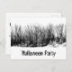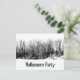 Cartaz de convite do Partido das Bruxas, com design de tipografia assustadora e uma imagem de floresta assombrada a preto e branco. Com texto preto e branco, você pode adicionar suas próprias informações. Um tema gótico assustador para planejar sua próxima fantasia ou celebração do Dia das Bruxas.