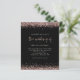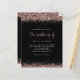 Um valor para o alternativo do ORÇAMENTO em tamanho menor de 4,5 x 5,6" de semirbrilho de 110 lbs, que é de espessura semelhante a um cartão postal (no entanto, não é adequado para uso como cartão postal). POR FAVOR, OBSERVE QUE HÁ UM convite por folha. Convite Negro De Casamento Glitter Dourado rosa. Uma tipografia elegante está em ouro para o título principal "O Casamento de complementar o resto do texto que você pode personalizar facilmente, com bordas de confete falho dourado no topo e no fundo e também no verso.