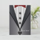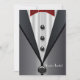 Camisa de vestimenta branca de smoking preto elegante e elegante e evento formal de gravata vermelha ou modelo convite de festas. Personalize e personalize os lados frontal e traseiro com suas informações de evento.