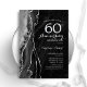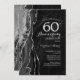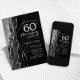 Convite de comemoração de aniversário de 60 anos preto e prata com surpresa de ágata. Design moderno e elegante com fundo de geodo de mármore de ágata em aquarela, brilho falso de prata e fonte de tipografia script. Cartão de convite elegante perfeito para uma festa de aniversário de casamento sofisticada. Convites Zazzle impressos ou modelo digital para impressão instantânea.