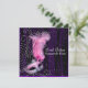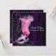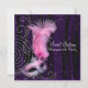 Máscara de penas rosa prateada elegante com brilho com fundo roxo e preto e branco com detalhes de pérolas. Este convite de festa de máscaras "Sweet Sixteen" roxo, rosa vibrante e preto é facilmente personalizado para a sua festa ou evento, adicionando os detalhes do evento, estilo de fonte, tamanho e cor da fonte e texto. Por favor, observe que - todos os enfeites de bolo, cartões e desenhos de convite que você encontrará no Zazzle são gráficos impressos sem joias, laços, relevos, rebaixados ou peças ou partes adicionadas.