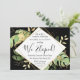 Este elegante convite à recepção de casamento tropical apresenta uma folhagem exótica com sotaques dourados sobre fundo preto. Um quadro de ouro geométrico moderno destaca o texto negro. As Douradas lâminas acentuam o design botânico e trazem um pouco de sofisticado capricho ao convite. "Eloped!" está no meio do convite. Este é o anúncio perfeito do casamento e convite de recepção para qualquer casamento temático tropical.