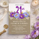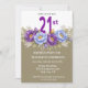 Convite Pretty Blue and Purple Peony 21st Birthday