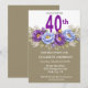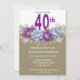 Convite Pretty Blue and Purple Peony 40th Birthday