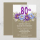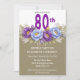 Convite Pretty Blue and Purple Peony 80th Birthday