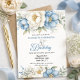 Convite Pretty Blue Magnolia and Peony 50th Birthday
