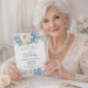 Convite Pretty Blue Magnolia and Peony 80th Birthday