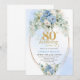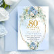 Convite Pretty Light Blue Peonies Gold Frame 80th Birthday