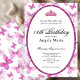 This elegant pink and white 18th birthday invitation has butterflies, a tiara crown, and a pink glitter oval with a personalizable template to create your own message. The invitation template is customizable in the listing editor and is also available as a digital download that's printable after you personalize it. It's a classic style that's perfect for a fun family event to celebrate a milestone birthday.