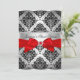 Convite de Aniversário Silver Red Sweet 16. Damask bonito & laço de joia. Por favor, note: Todas as imagens planas, elas não têm joias reais!