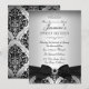 Convite de Aniversário Sweet 16 Prata e Preto. Damask bonito e laço com joia. Por favor, note: Todas as imagens planas, elas não têm joias reais!