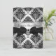Convite de Aniversário Sweet 16 Prata e Preto. Damask bonito e laço com joia. Por favor, note: Todas as imagens planas, elas não têm joias reais!