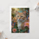 A pretty white and orange cat enjoying a beautiful Summer day surrounded by a charming pastel cottage floral garden.