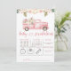 Celebre a chegada iminente de uma pequena abóbora com nosso Cartão de Previsões para o Bebê do Caminhão da Abóbora Rosa. Este cartão encantador e caprichoso é a adição perfeita para o chá de bebê com tema de outono. Convide seus convidados a fazerem suas previsões e compartilharem seus conselhos sobre a chegada iminente. O design do caminhão da abóbora rosa adiciona um toque de doçura e as cores inspiradas no outono criam uma atmosfera quente e convidativa. Prepare-se para um chá de bebê memorável cheio de risadas, amor e expectativa.