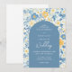 Convite Primavera azul-poeirento e flores amarelas do camp