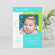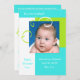 Personalize este brilhante e alegre chá de fraldas de fotos ao estilo com um lugar para adicionar a nova imagem do bebê de sua chegada ao precioso. O fundo é feito com primavera neutro ou cores de verão para um garoto ou garota e possui fitas de filigrana e folhas moldando a fotografia. As cores incluem azul ciano, verde e branco. Convide seus amigos e família para conhecer seu doce querido. Uma manutenção perfeita para adicionar ao álbum do seu bebê. Outros estilos disponíveis também na loja de presentes do PhotographyTK Designs.