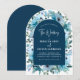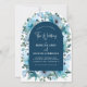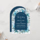 Elegante primavera azul-poeirento, arco branco floral Convite para casamento. Celebre o seu amor com este convite de casamento da primavera personalizável, com um eterno azul empoeirado e design floral branco. As delicadas flores de aquarelas e matizes azuis criam um aspecto romântico e sofisticado, perfeito para um casamento de primavera ou jardim. Defina o tom para seu dia especial com um convite maravilhosamente projetado que reflita seu estilo.