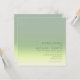 O pano de fundo de todas as peças neste conjunto minimalista de casamento é um gradiente de cores que vai do verde de sábio mole ao amarelo pálido ao marfim. O convite de casamento mostrado aqui apresenta um layout moderno e elegante e fonte de sans serif contemporânea para acrescentar ao seu apelo. Adicione facilmente os detalhes do evento usando o modelo fornecido. Procure ID741 para ver o conjunto completo de produtos correspondentes no Primavera Meadow ou escolha uma das outras combinações de gradiente disponíveis para se adequar à paleta de cores do casamento.