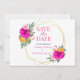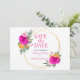 Primavera de Flor Selvagem Rosa Salvar A Data O Convite apresenta um arranjo de flores aquarelas em tons de rosa e branco em verde-jardim rústico.