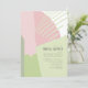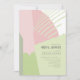 Bloqueio de cor abstrato em uma paleta colorida de cor rosa cor rosa e primavera verde fornece um fundo impressionante para as peças desta suíte de casamento contemporânea. O chá de panela de casamento mostrado aqui é perfeito para um casamento de primavera moderno. Adicione facilmente todos os detalhes do evento usando o modelo fornecido. Procure ID740 para ver outras opções de cores e produtos adicionais com este design.