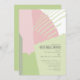Bloqueio de cor abstrato em uma paleta colorida de cor rosa cor rosa e primavera verde fornece um fundo impressionante para as peças desta suíte de casamento contemporânea. O convite de janto de ensaio de casamento aqui mostrado é perfeito para a noiva que está planejando um casamento moderno na primavera. Adicione facilmente todos os detalhes do evento usando o modelo fornecido. Procure ID740 para ver outras opções de cores e produtos adicionais com este design.