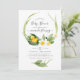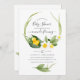 Primavera de bebê neutro em gêneros - convite para chás de fraldas páscoas com tipografia elegante, que inclui um bonitinho dormindo em uma lilly florescente do vale com daffodils.