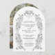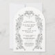 Primavera de fleur de lis estilo elegante, desenhado à mão, fez um convite de casamento com primavera, flores, folhas, guloseimas e pequenas borboletas num fundo branco de um lado e a sua própria fotografia no verso. Simples preto e branco monótono clássico, personalize com seus próprios detalhes de casamento e iniciais monográficas na frente e uma foto especial na parte de trás. Outras cores e itens correspondentes estão disponíveis ou podem ser criados por solicitação. © Desenho manual original e design por Sarah Trett para www.mylittleedenweddings.com no Zazzle.