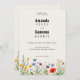 Esses convites encantadores capturam a beleza e o romance de um campo de primavera, perfeito para casais planejando um casamento rústico ou ao ar livre. A design apresenta uma vibrante borda de flores silvestres em várias cores, criando uma atmosfera balbuciosa e alegre.