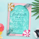 Jogue uma festa de solteira pela piscina com este moderno convite de festas de piscina inspirado por primaveras de palma. Ele apresenta um azulejo de pátio rosa e uma piscina de natação em forma de arco com água realista, convidando as folhas de palma e guarda-chuvas. A parte traseira da placa é rosa, mas você pode mudar isso para qualquer cor. Este convite festa de solteira é perfeito para destinos como Miami - Flórida, Cabo San Lucas, Scottsdale - Arizona, etc.