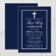 Convite de Primeira Comunhão Azul-Marinho Elegante com Cruz. Quadro Branco.