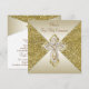 Convite de Primeira Comunhão dourada com uma cruz de diamante dourada elegante em um belo fundo com brilho dourado. Você pode personalizar facilmente este convite de Primeira Comunhão dourado adicionando os detalhes do seu evento no tamanho e cor da fonte e na redação de sua escolha. Este é um design impresso sem diamantes, joias, brilho, etc. reais.