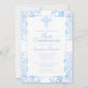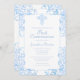 Perfeito para o primeiro convite de comunhão do seu filho, este design apresenta uma cruz azul feita de damask com uma borda correspondente, Abaixo estão os detalhes de celebração para você personalizar em uma fonte clássica. A parte traseira da placa tem uma cruz azul em branco. Projetado apenas para você pelo artista mundialmente renomado ©Tim Coffey.