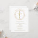 Elegante convite de Primeira Comunhão com grinalda floral de cruz de ouro O nome da pessoa especial é emoldurado em uma delicada grinalda floral e cruz de folha de ouro falsa. Abaixo, os detalhes da Primeira Comunhão são apresentados em tipografia chic. O verso apresenta uma grinalda floral de folha de ouro falsa e um crucifixo combinando. Desenhado por Thisisnotme©