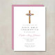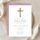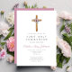 Convite Primeira Comunhão da Cruz Floral Rosa Boca-rosa