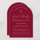 Um simples e moderno convite à primeira comunhão. Tem apenas texto branco sobre fundo burgundy. Na parte superior há uma cruz com texto arquivado acima dela. A ocasião e o nome são escritos em roteiro.